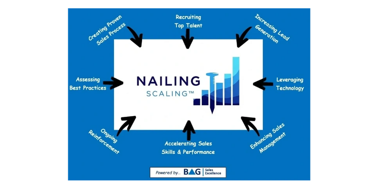 After over three-decades of Individual Contributor Sales, Sales Team Management, Revenue Generation, Sales Operations, Sales Enablement, Go to Market, Business Consulting, etc. experience, BAG Sales Excellence applied all of our skills, experiences and successes to bring you the Nailing Scaling™ system – A one-stop, end-to-end solution specifically for Startups and SMBs ready for accelerated growth, with each component working in unison for the common goal of rapid scaling.